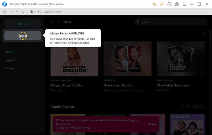 Hinweis: TunePat wird keine Informationen über Ihr Tidal-Konto sammeln.